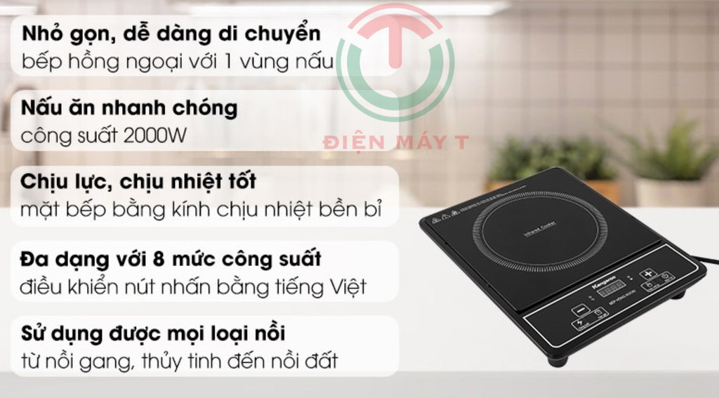 Bếp hồng ngoại Kangaroo KG20IFP1 ra mắt năm 2020, của thương hiệu Kangaroo uy tín Việt Nam, sản xuất tại Trung Quốc với kiểu dáng gọn đẹp, nấu ăn đa dạng, tiện lợi, xứng đáng có mặt trong mọi căn bếp Việt.