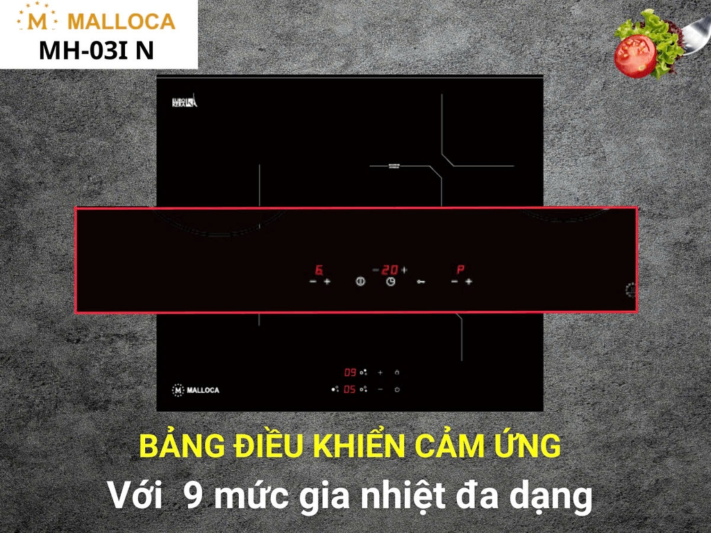 Bếp từ Malloca MH-03I N được trang bị 9 mức gia nhiệt, đem đến sự linh hoạt và đa dạng trong quá trình nấu nướng. Bạn có thể sử dụng mức gia nhiệt thấp để nấu món ăn nhẹ nhàng hoặc hâm nóng thức ăn đã nấu. Mức gia nhiệt trung bình có thể được sử dụng để chiên, xào hay nấu chín các loại thực phẩm. Và với mức gia nhiệt cao nhất, bạn có thể đun sôi nước, nấu các món áp chảo hoặc nấu ăn trong trường hợp cần nấu nhanh.