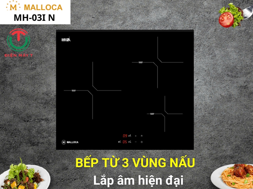 Bếp từ Malloca MH-03I N có 3 vùng nấu tổng công suất 5.6kW, cung cấp đủ không gian cho việc nấu ăn đa dạng và linh hoạt. 3 vùng nấu này cho phép bạn nấu 3 món ăn cùng một lúc, giúp tiết kiệm thời gian và tăng hiệu suất nấu nướng. Mỗi vùng nấu có thể điều chỉnh công suất riêng, cho phép bạn điều chỉnh nhiệt độ phù hợp với từng món ăn và phong cách nấu riêng của bạn: 1 vùng Ø 210 – 2.kW, 1 vùng Ø 210 – 2kW, 1 vùng Ø 150 – 1.6kW