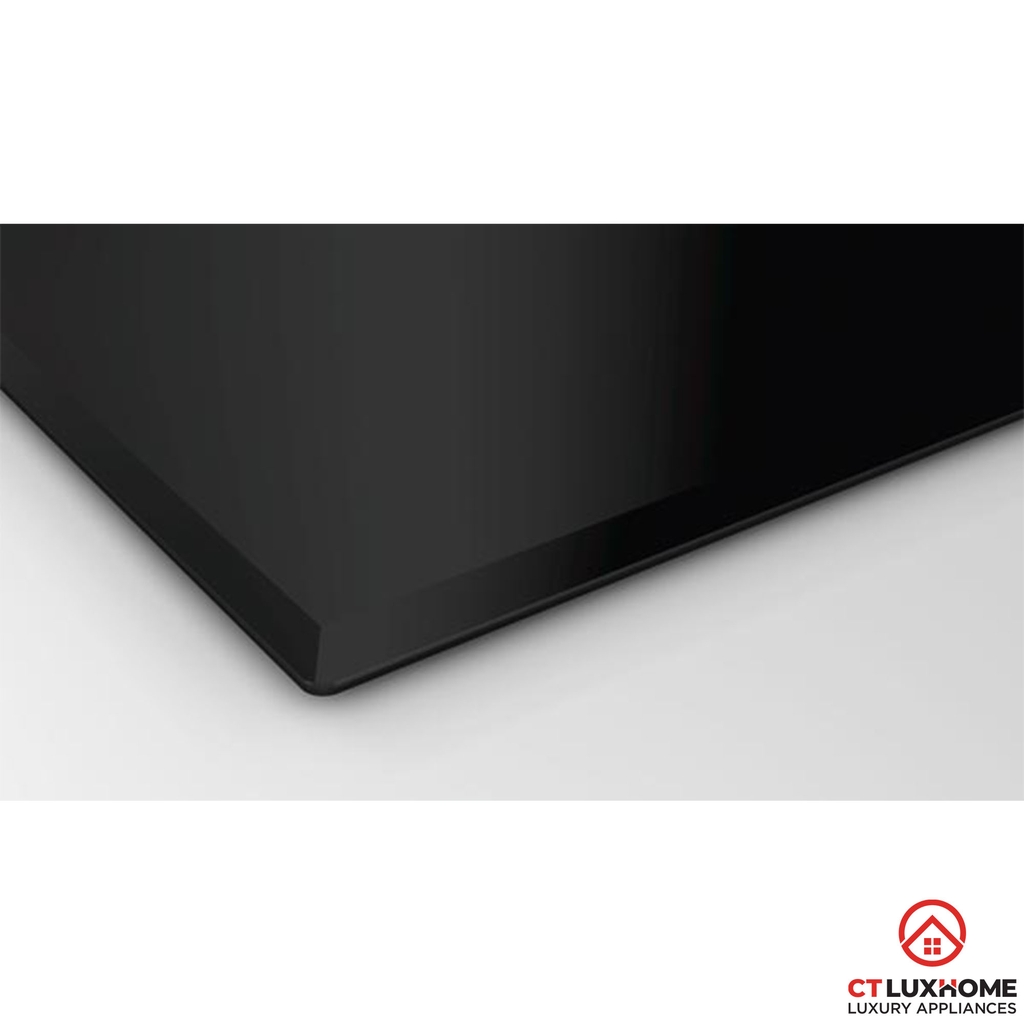 Bếp từ Bosch PID651DC5E được thiết kế U-Bevel ấn tượng với các cạnh vát mặt trước và 2 bên tạo góc nghiêng tinh tế, kiểu dáng hình vuông độc đáo. Mặt bếp được trang bị kính Schott Ceran đen bóng, tạo điểm nhấn giúp cho căn bếp của bạn trở nên hiện đại và sang trọng.