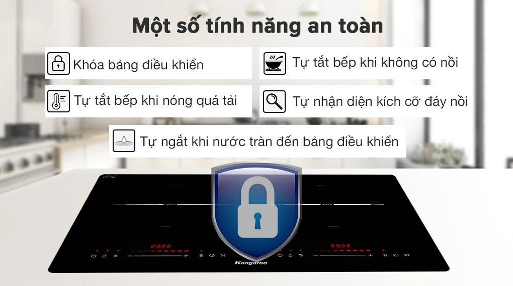 Bếp điện từ đôi Kangaroo KGIC44D1C trang bị khóa trẻ em an toàn, hệ thống chống quá nhiệt, quá áp và chống tràn tiện lợi. Khi nồi quá nóng, bếp sẽ tự động tắt. Bạn chỉ cần chờ vài phút để bếp nguội sau đó bật bếp lên và sử dụng bình thường.