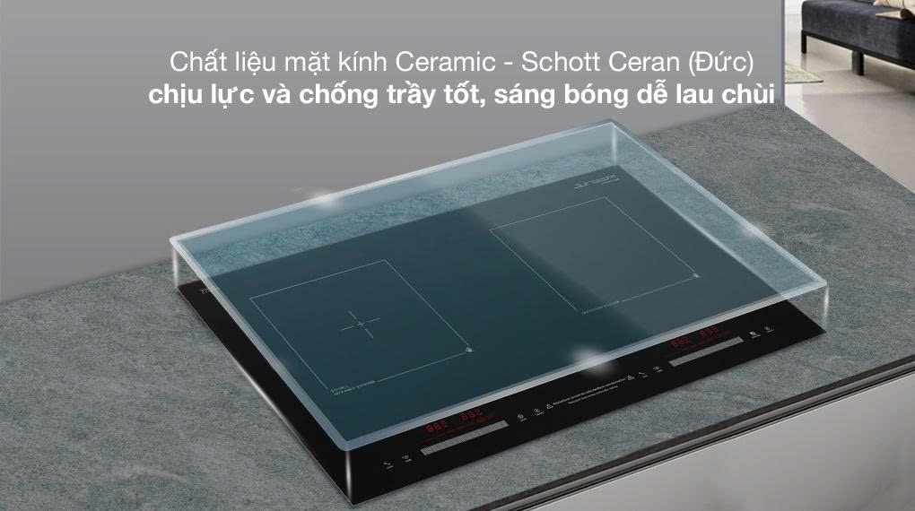 Bếp điện từ hồng ngoại Junger MTD-18 sở hữu mặt kính Schott Ceran cao cấp, sang trọng, bền bỉ.