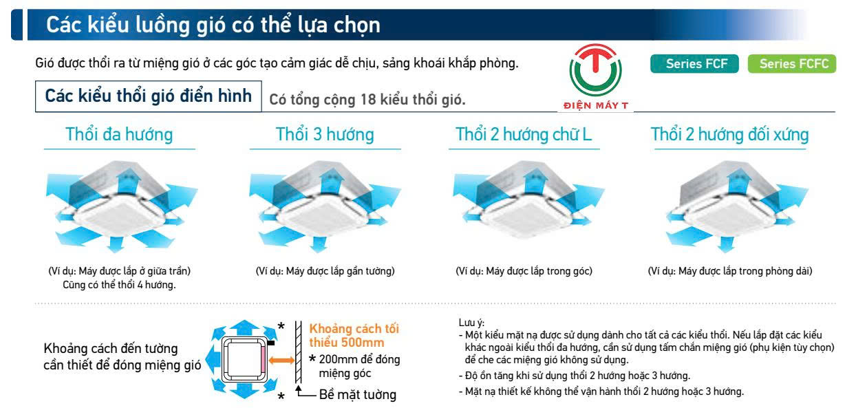 + Thương hiệu Daikin đã đáp ứng mọi nhu cầu khách hàng với dãy sản phẩm đa dạng phong phú nhiều chủng loại (Dàn lạnh cassette âm trần, dàn lạnh áp trần, dàn lạnh nối ống gió, dàn lạnh tủ đứng đặt sàn) và nguồn điện (1 pha và 3 pha). Giao hàng cực nhanh , lắp đặt đúng quy trình của nhà sản xuất