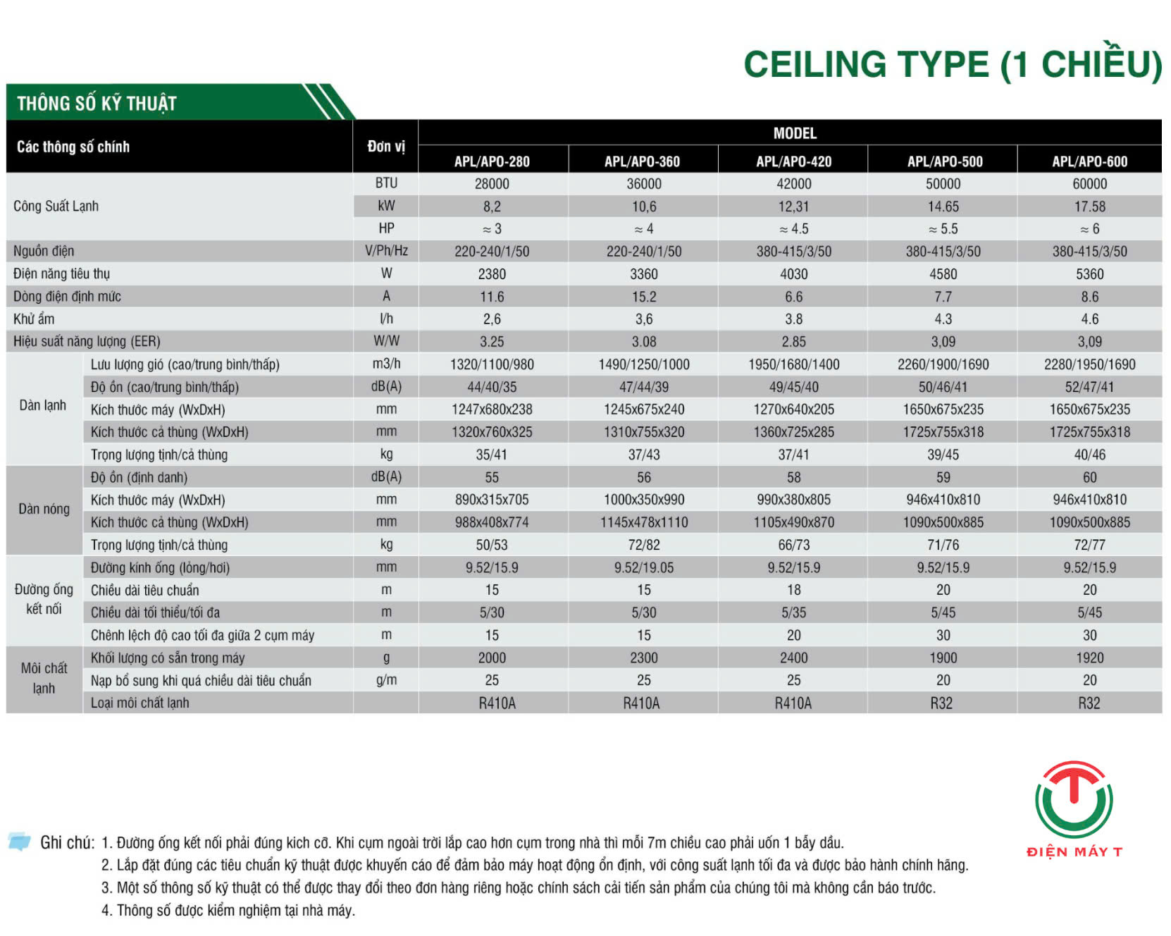 - Sử dụng gas R410A.