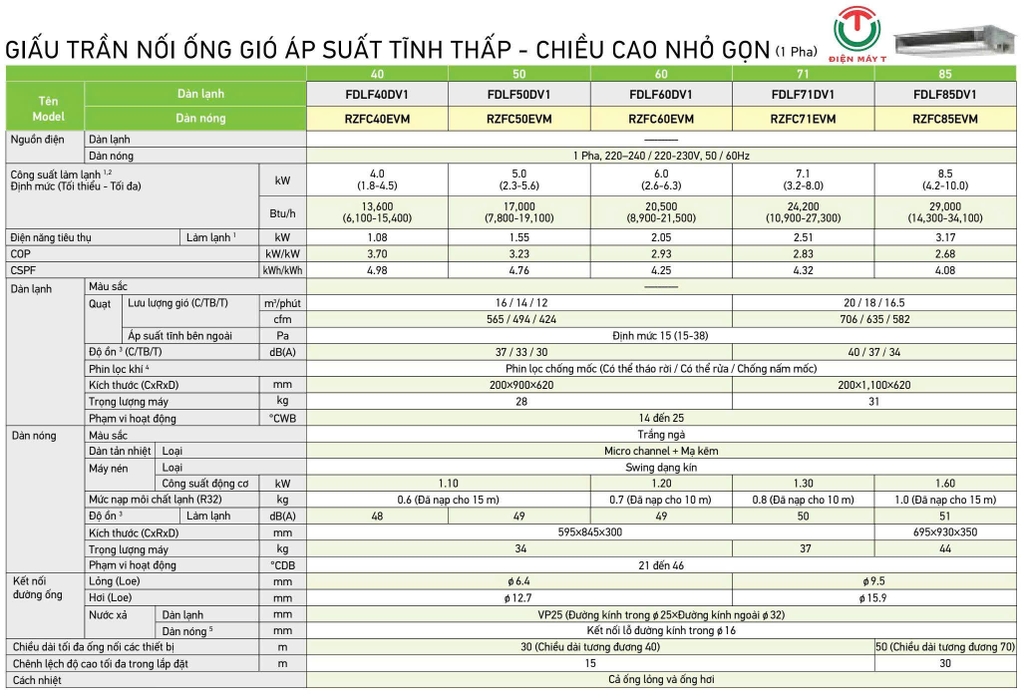 Điều hòa nối ống gió Daikin FDLF60DV1/RZFC60EVM thuộc dòng máy điều hòa nối ống gió 1 chiều inverter tiêu chuẩn áp suất tĩnh thấp với thiết kế nhỏ gọn cũng khả năng tiết kiệm điện năng cho người dùng. Đây được xem là giải pháp cho những công trình có không gian nhỏ hẹp mà vẫn đảm bảo tính thẫm mỹ cùng khả năng làm mát hiệu quả.