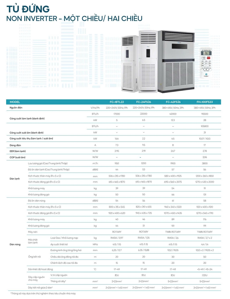 Casper FC-42FS36 sử dụng dàn đồng chất lượng cao, mang lại độ bền vượt trội, đồng thời giúp máy hoạt động ổn định ngay cả trong điều kiện khắc nghiệt. Điều này giúp kéo dài tuổi thọ của sản phẩm và giảm thiểu chi phí bảo trì. Bên cạnh đó, với việc sử dụng gas R410A, máy không chỉ mang lại hiệu suất làm lạnh cao mà còn thân thiện với môi trường hơn so với các dòng gas cũ như R22.