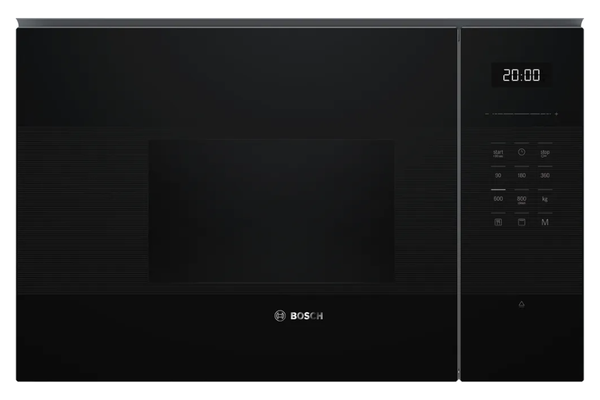 Lò vi sóng âm tủ Bosch BFL524MB2 được thiết kế theo dạng lắp âm tủ, giúp không gian bếp trở nên gọn gàng và liền mạch hơn. Mặt kính đen sang trọng kết hợp viền inox tinh tế tạo nên vẻ ngoài hiện đại, dễ dàng hòa hợp với nhiều phong cách nội thất bếp khác nhau. Không chỉ là thiết bị nấu nướng, Bosch BFL524MB2 còn góp phần nâng cao tính thẩm mỹ cho toàn bộ khu vực bếp.