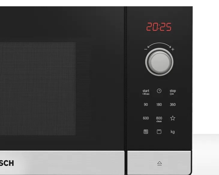 Lò vi sóng Bosch FEL053MS1M sở hữu ngoại hình tinh tế với gam màu đen chủ đạo kết hợp viền thép không gỉ nổi bật, tạo nên điểm nhấn ấn tượng trong không gian bếp. Từng chi tiết đều được gia công tỉ mỉ, mang lại cảm giác chắc chắn, cao cấp và thẩm mỹ vượt trội.
