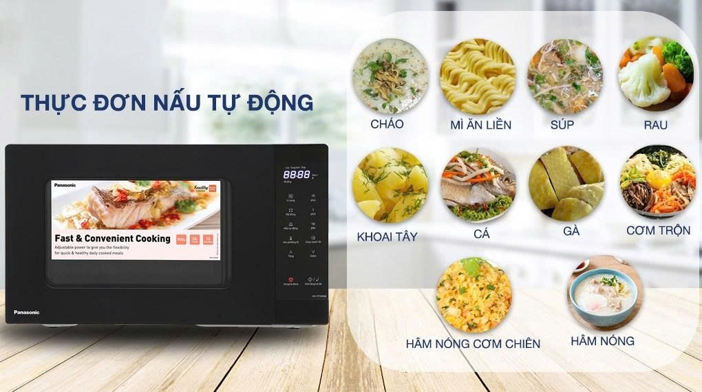 Lò vi sóng Panasonic NN-ST34NBYUE có 3 chức năng chính: nấu, hâm nóng, rã đông và 10 thực đơn tự động lập trình sẵn, giúp việc nấu nướng của bạn trở nên nhanh chóng và đơn giản hơn.