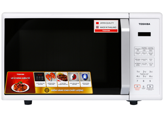 Lò vi sóng được trang bị bảng điều khiển Tiếng Việt thông minh, dễ sử dụng. Chế độ hẹn giờ nấu tiện lợi, đảm bảo an toàn hơn ngay cả khi người dùng nấu ăn trong lúc bận rộn. Màn hình LED 4 chữ số giúp bạn dễ dàng điều chỉnh nhiệt độ ngay cả khi lò đặt ở trong không gian tối. Đặc biệt, lò còn trang bị khóa trẻ em giúp hạn chế những nguy hiểm không đáng có khi trẻ vô tình đùa nghịch xung quanh lò. Thiết bị do hãng TOSHIBA sản xuất và có thời gian bảo hành là 12 tháng.