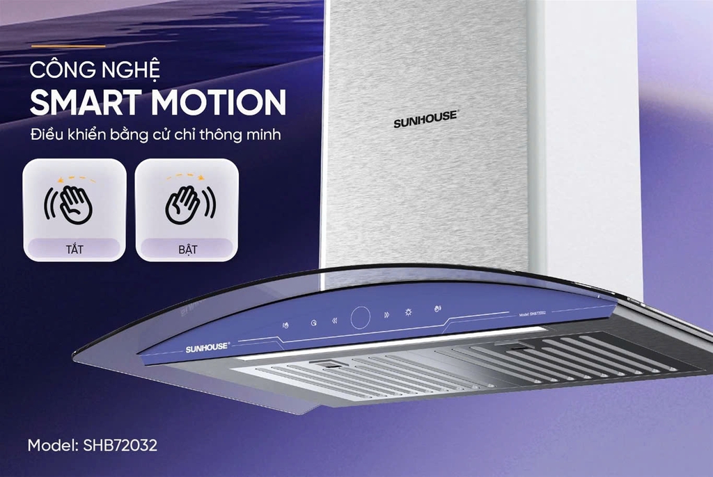 Ngoài bảng điều khiển cảm ứng, máy hút mùi Sunhouse SHB72032 còn trang bị cảm biến không chạm với công nghệ Smart Motion, bạn có thể khởi động nhanh chóng bằng cách vẫy tay nhẹ nhàng, không sợ tay dính dầu mỡ làm vấy bẩn bề mặt thiết bị khi sử dụng.