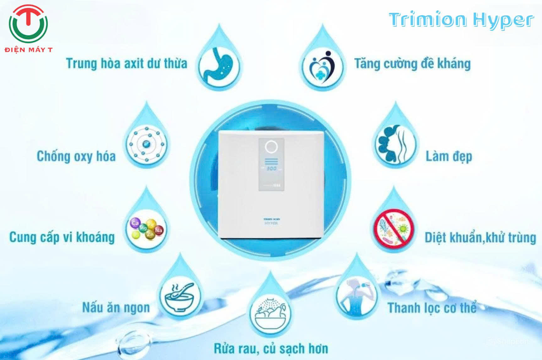 Ngoài ra, nước ion kiềm được tạo ra từ máy điện giải Trimion Hyper còn chứa 4 đặc tính quý, giúp hỗ trợ chăm sóc sức khỏe toàn diện.