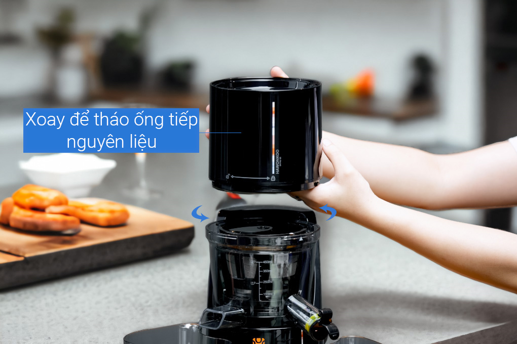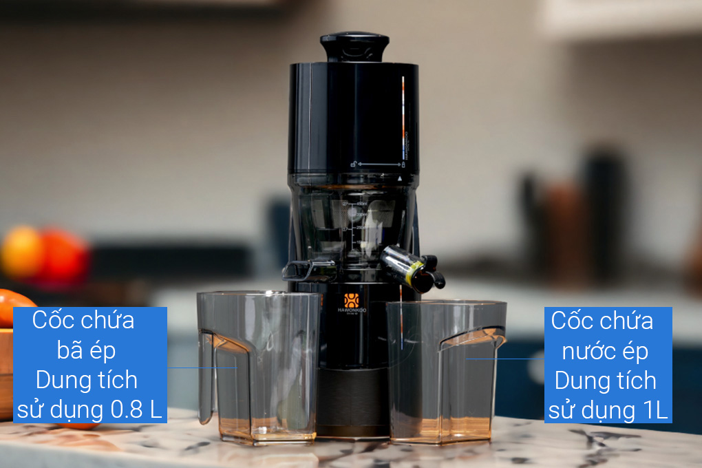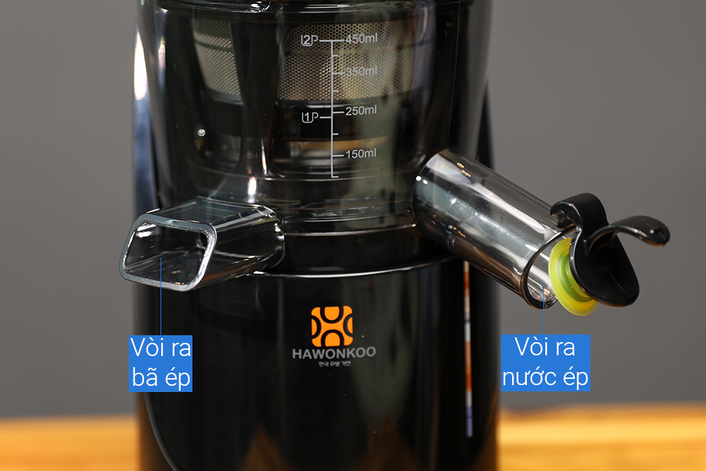 - Máy ép chậm Hawonkoo vận hành với động cơ DC 100% dây đồng, chạy êm ái, không ồn, chống rung ở mức công suất 200W.