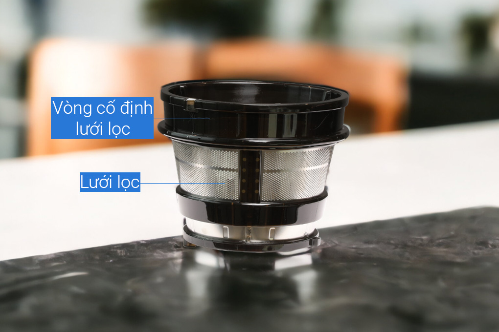 - Thanh gạt chống bám cặn/sơ trên lưới lọc cho nước ép chảy ra ngoài nhanh, hạn chế tắc nghẽn lưới lọc.