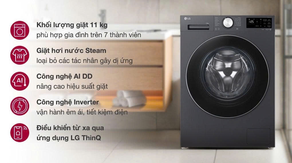 Máy giặt LG AI Inverter 11 kg FX1411N5G là trợ thủ đắc lực giúp bạn chăm sóc quần áo một cách tối ưu