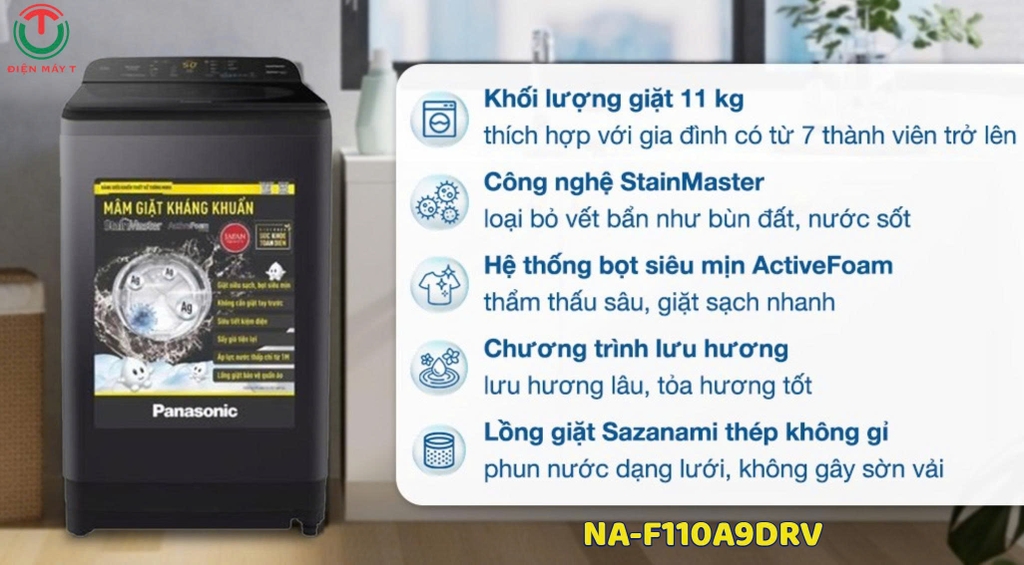 Thế hệ máy giặt Panasonic mới được thiết kế mới nắp mở rộng tối đa giúp thuận tiện cho đồ giặt của gia đình vào/lấy đồ giặt ra khỏi máy giặt.