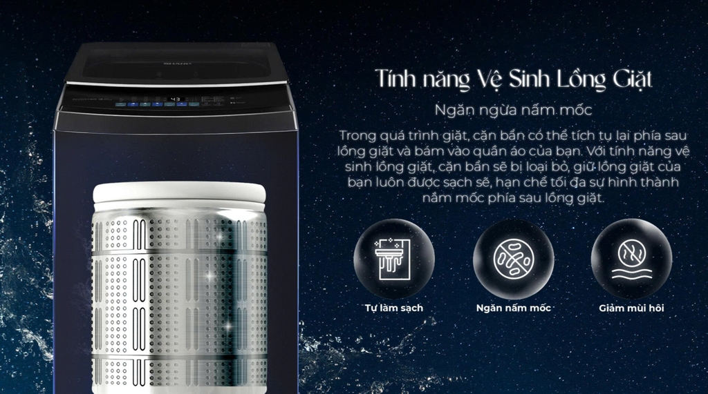 Máy giặt Sharp 13 Kg ES-TM130CD-DS lồng đứngMáy giặt Sharp 13 Kg ES-TM130CD-DS có khối lượng giặt lớn 13kg phù hợp cho gia đình từ 5 - 6 thành viên. Sản phẩm được tích hợp 5 chương trình giặt tự động, đáp ứng tốt mọi nhu cầu giặt giũ của gia đình. Hệ thống xoáy nước 3 chiều mạnh mẽ kết hợp TurboDry vắt khô nhanh chóng, đảm bảo quần áo luôn thơm tho, sạch sẽ và bền đẹp sau nhiều lần giặt. Thiết kế lồng đứng tiện lợiMáy giặt Sharp 13 Kg ES-TM130CD-DS sở hữu thiết kế lồng đứng tiện lợi, giúp dễ dàng bỏ quần áo vào máy. Vỏ máy được làm từ kim loại phủ lớp PCM bền bỉ, chống ăn mòn, hạn chế bám vân tay và dễ dàng lau chùi. Cửa máy giặt bằng kính cho phép bạn quan sát quá trình giặt khi máy đang hoạt động. Lồng giặt làm từ thép không gỉ cao cấp, hạn chế mảng bám, vi khuẩn sinh sôi trong quá trình giặt. Bảng điều khiển cảm ứng tiện lợiBảng điều khiển cảm ứng thông minh kết hợp với màn hiển thị LED rõ nét, người dùng dễ dàng theo dõi và điều chỉnh các chế độ giặt phù hợp. Khối lượng giặt lớn 13kgMáy có khối lượng giặt lớn lên đến 13kg phù hợp cho những gia đình đông người từ 5 - 6 thành viên. Sản phẩm giúp bạn dễ dàng giặt chăn mền, quần áo cồng kềnh hay nhiều đồ cùng lúc, tiết kiệm thời gian và công sức. Hệ thống xoáy nước 3 chiều, loại bỏ vết bẩn dễ dàngHệ thống xoáy nước 3 chiều tạo luồng nước mạnh mẽ và xoay đa hướng, giúp loại bỏ vết bẩn cứng đầu, giúp quần áo được giặt sạch sâu mà không lo làm hư hại quần áo. 5 Chế độ giặt cài sẵnMỗi chất liệu vải sẽ có đặc tính khác nhau, để mang lại hiệu quả giặt sạch tối ưu nhất, máy giặt Sharp được cài đặt sẵn 5 chế độ, được tính toán trước về thời gian, lượng nước,.. - Giặt thường - Giặt nhanh - Giặt chăn màn - Giặt ngâm - Vệ sinh lồng giặt Chế độ tự vệ sinh lồng giặtĐặc biệt, máy giặt còn được tích hợp chế độ tự vệ sinh lồng giặt, giúp loại bỏ cặn bẩn, vi khuẩn và mùi hôi tích tụ bên trong lồng giặt sau mỗi lần sử dụng. Tính năng này không chỉ đảm bảo quần áo luôn được giặt trong môi trường sạch sẽ mà còn kéo dài tuổi thọ của máy giặt. Công nghệ Inverter tiết kiệm điện năngCông nghệ Inverter tiên tiến giúp tối ưu hóa hiệu suất hoạt động và tiết kiệm chi phí sử dụng điện năng. Công nghệ này không chỉ giảm chi phí sử dụng hàng tháng mà còn giúp máy giặt vận hành êm ái, bền bỉ và ổn định trong thời gian dài. Tính năng tiện lợiMáy giặt Sharp ES-TM130CD-DS được trang bị hàng loạt tính năng tiện lợi, giúp việc giặt giũ trở nên dễ dàng và tiện lợi: - Hẹn giờ linh hoạt: giúp bạn chủ động hơn trong việc giặt giũ, tiết kiệm thời gian để thực hiện nhiều công việc khác. - Khóa trẻ em: tính năng giúp vô hiệu hoá bảng điều khiển của máy giặt, tránh trẻ nhỏ nghịch ngợm mở cửa máy khi đang giặt hoặc thay đổi các cài đặt ban đầu. - Tự động khởi động lại: chế độ tự ghi nhớ chương trình giặt, khi gặp phải sự cố gián đoạn do mất điện, máy sẽ giặt lại theo đúng chương trình đã cài đặt trước đó mà không cần thao tác lại một lần nữa khi có điện trở lại. Máy giặt Sharp 13 Kg ES-TM130CD-DS là một sản phẩm xứng đáng để đầu tư cho gia đình, giúp bạn có thêm nhiều thời gian tận hưởng những giây phút thư giãn bên gia đình. Đến ngay Siêu thị Điện máy HC để mua sản phẩm với mức giá cực tốt. |