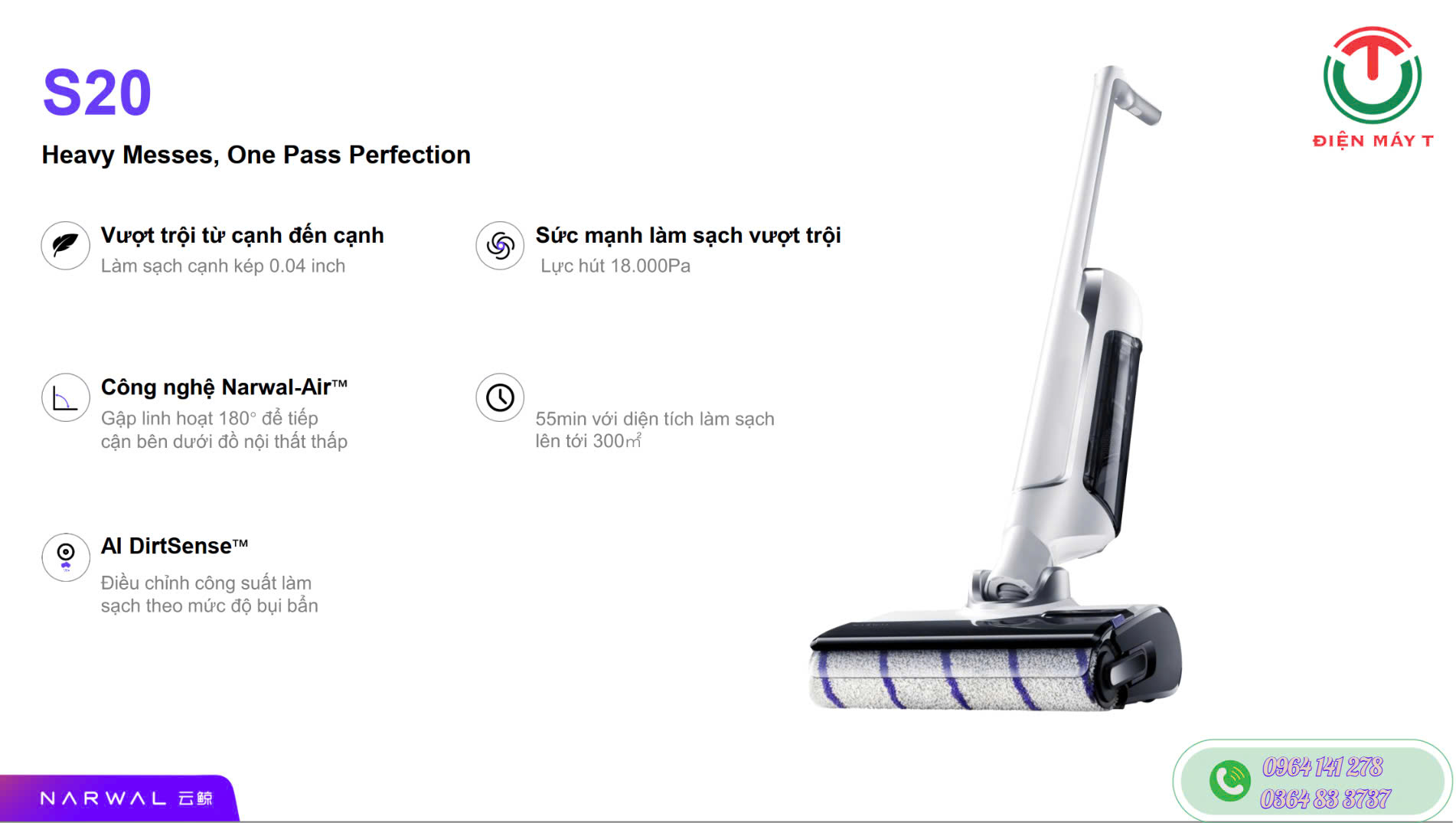 Narwal S20 là máy hút bụi cầm tay thông minh, phù hợp cho gia đình bận rộn muốn không gian sống sạch sẽ mà không cần nỗ lực. Thiết kế tối ưu và công nghệ hiện đại mang lại trải nghiệm tiện lợi.