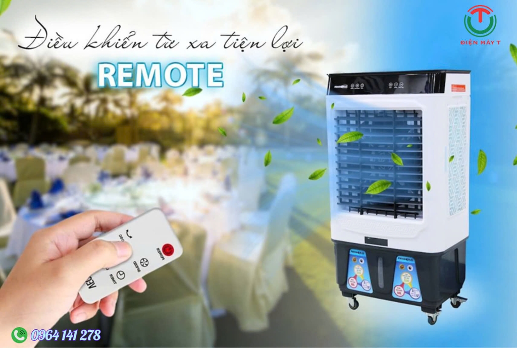 Máy làm mát hơi nước này sử dụng motor được quấn dây đồng 100% giúp máy chạy êm, độ ồn thấp, hoạt động lâu dài theo thời gian. Máy trang bị màn hình hiển thị LCD cho phép hiển thị các thông số kỹ thuật một cách rõ ràng cho bạn quan sát dễ dàng hơn, đèn LED nhiều màu đẹp mắt. Ngoài ra, thiết bị cũng có kèm theo remote điều khiển từ xa tiện lợi giúp bạn điều khiển từ mọi vị trí.