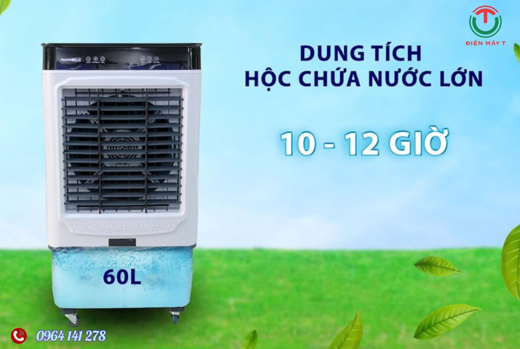 Máy làm mát di động Panworld PW-2811 hoạt động với công suất mạnh giúp làm mát nhanh, có âm thanh báo khi hết nước, bảng điều khiển điện tử, bo mạch có tráng lớp chống ẩm tăng độ bền, dung tích bình nước là 60L giúp máy hoạt động liên tục từ 10 - 12h liên tục, thang báo mực nước hiển thị bên ngoài cho bạn biết lượng nước cần thêm vào, tránh tình trạng hết nước khi sử dụng. Máy làm mát di động này hoạt động với công suất là 160W cho lượng gió thổi mạnh đạt 5000 m3/giờ, nhờ đó quạt có thể làm mát cho phạm vi làm mát 40 - 50m2, tính năng đảo gió tự động (trái - phải) mang hơi mát đến khắp phòng, bạn có thể cho thêm ít đá vào nước để tăng hiệu quả làm mát vào những ngày hè nóng bức. Máy với nguyên lý làm mát dựa trên nguyên lý bốc hơi nước tự nhiên giúp máy có thể làm mát diện rộng, tiết kiệm điện năng hiệu quả gấp 10 lần so với các dòng sản phẩm khác. Máy sử dụng tấm cooling pad dày 5cm cho tính năng làm mát nhanh cùng khả năng lọc bụi bẩn tốt hơn, mang đến làn gió mát tự nhiên cho không gian sử dụng.