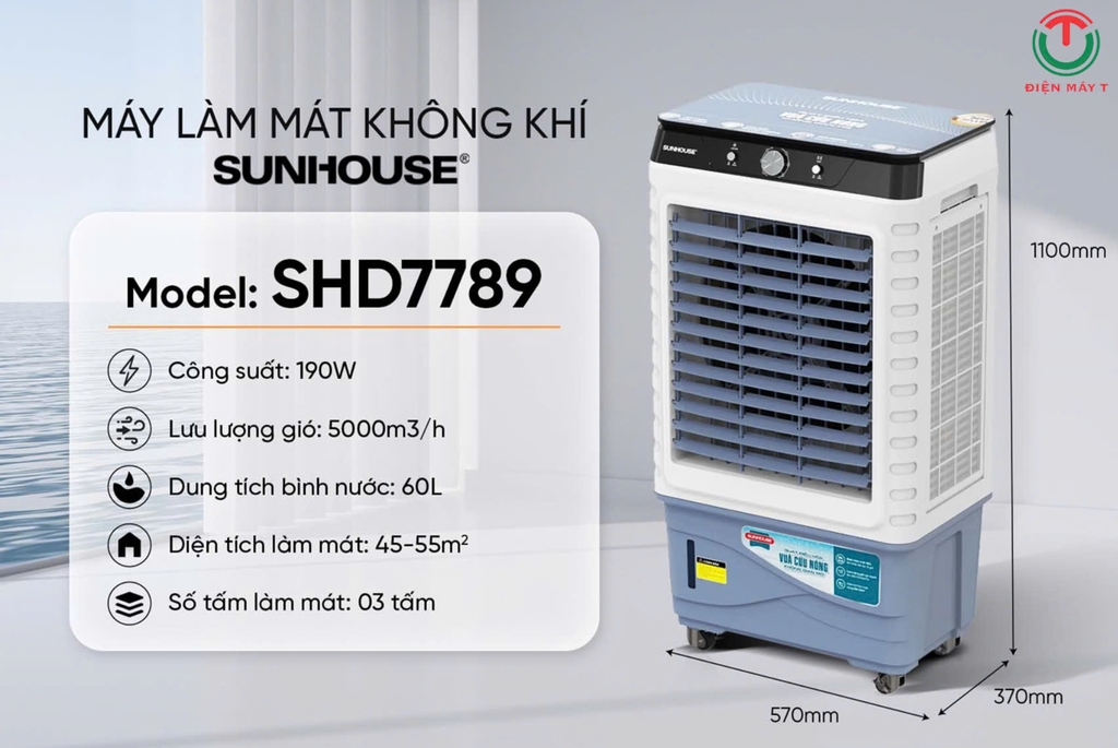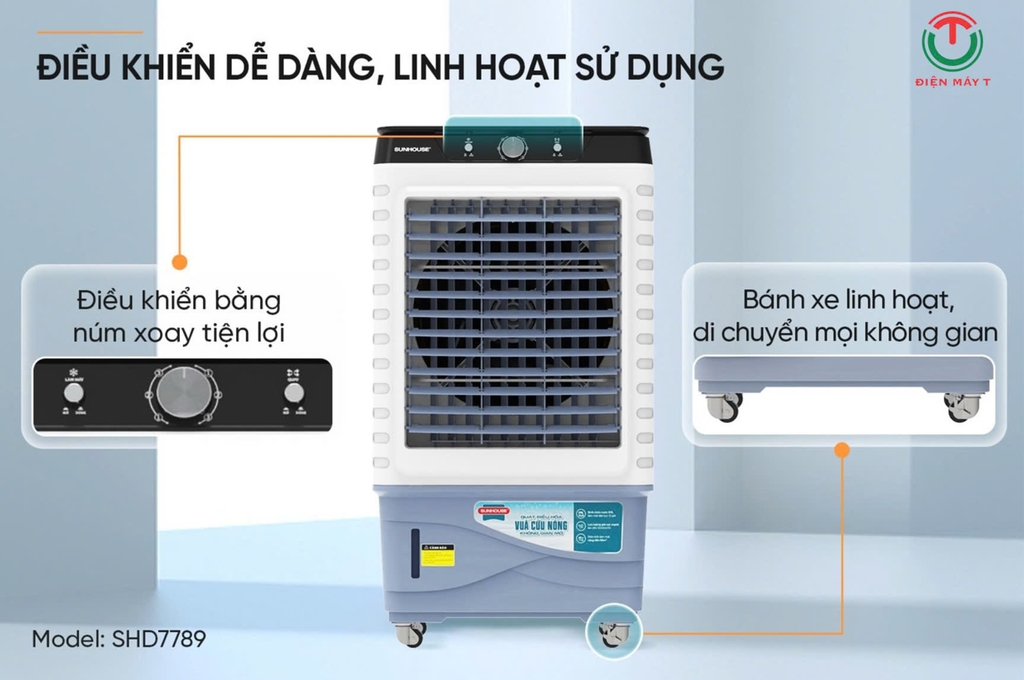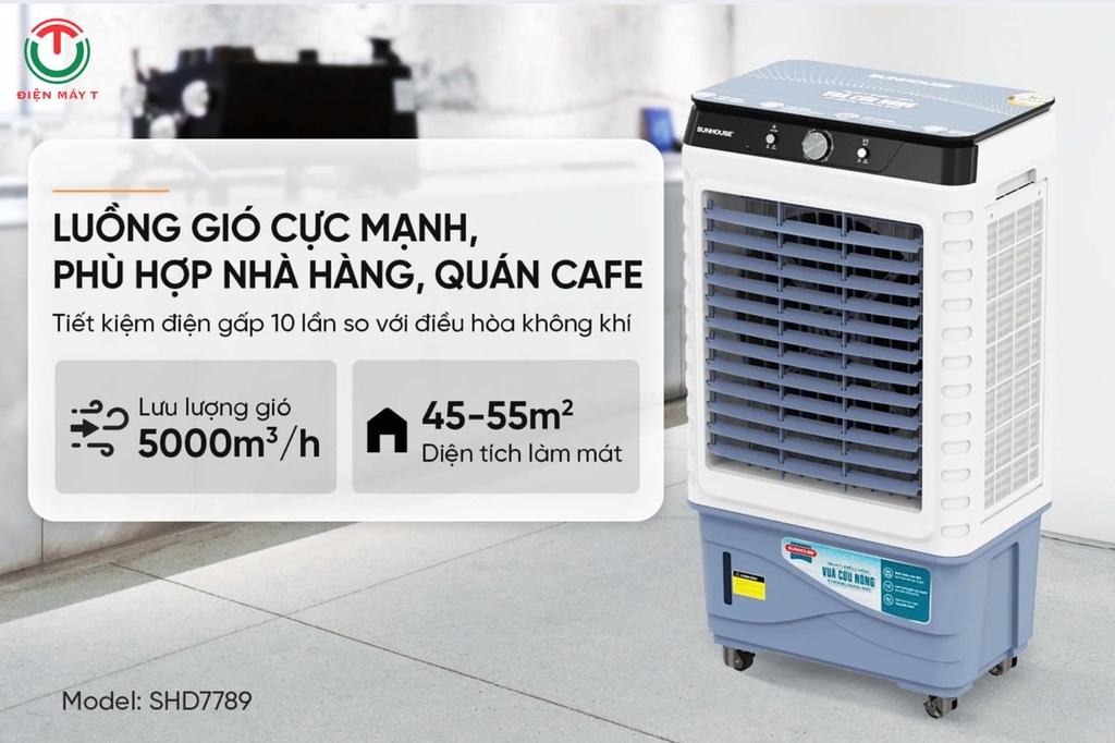 Hoạt động dựa trên nguyên lý bốc hơi nước tự nhiên, máy làm mát không khí SUNHOUSE SHD7789 chính là giải pháp làm mát tối ưu cho không gian mở. Với sản phẩm này, bạn sẽ không cần phải đóng kín cửa như sử dụng máy điều hoà mà không gian trong phòng vẫn thoáng mát tự nhiên. Bên cạnh đó, người dùng cũng không cần phải lo lắng về tình trạng sốc nhiệt hay khô gia khi bước từ ngoài vào phòng.