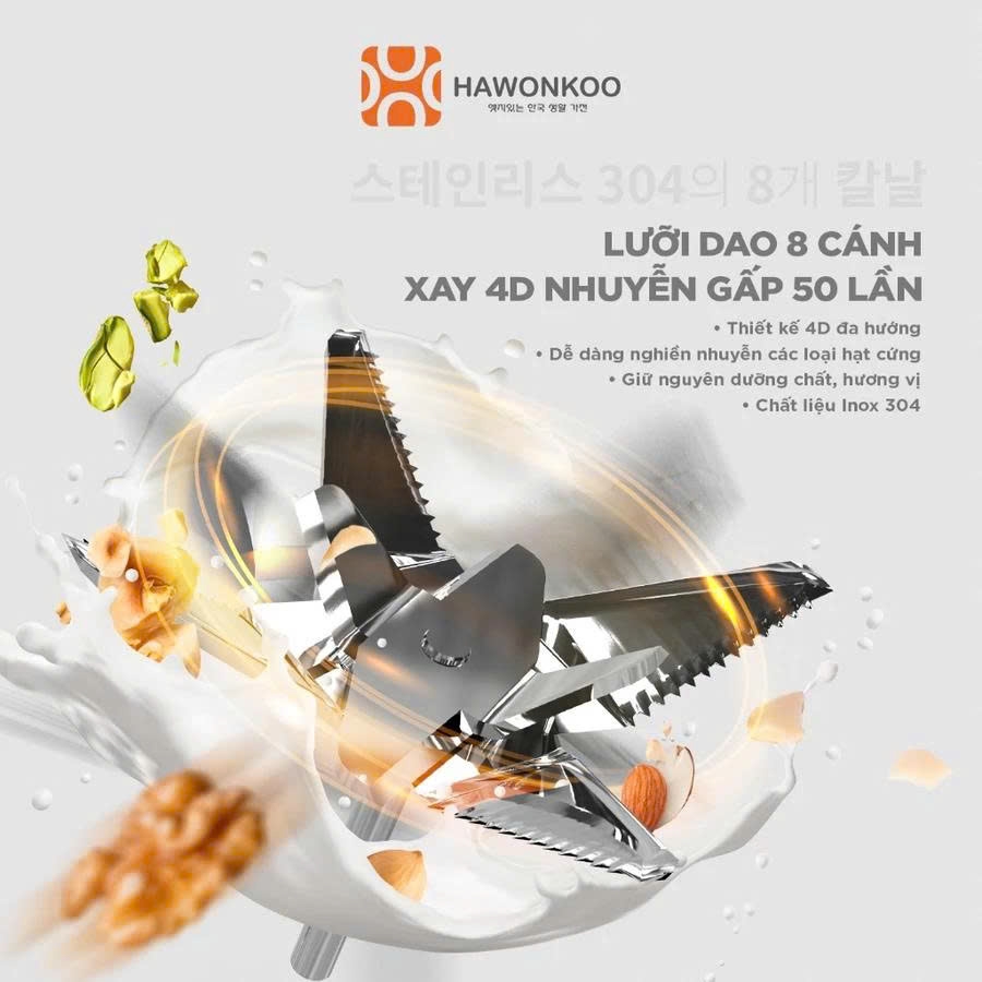 Chỉ hoạt động khi nắp đậy được đóng đúng vị trí; tự ngắt khi cạn nước, quá nhiệt, quá tải động cơ |