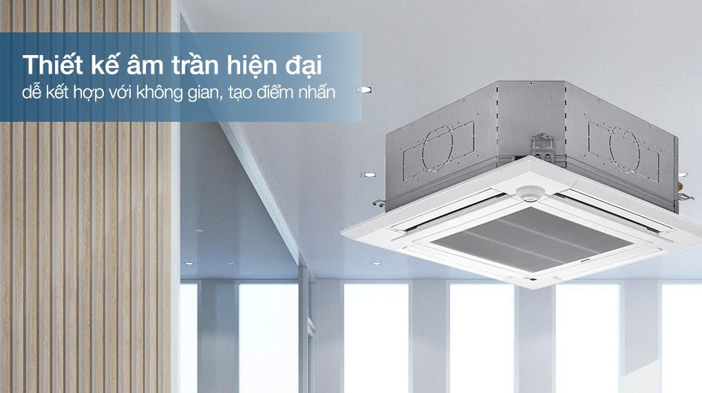 Dòng máy Cassette âm trần cho luồng thổi rộng tạo hiệu quả điều hòa không khí cao cho các không gian có trần cao đến 4,5m. Giờ đây các hội trường, phòng trưng bày hay trung tâm mua sắm có trần cao đều được tìm thấy giải pháp làm lạnh hiệu quả.
