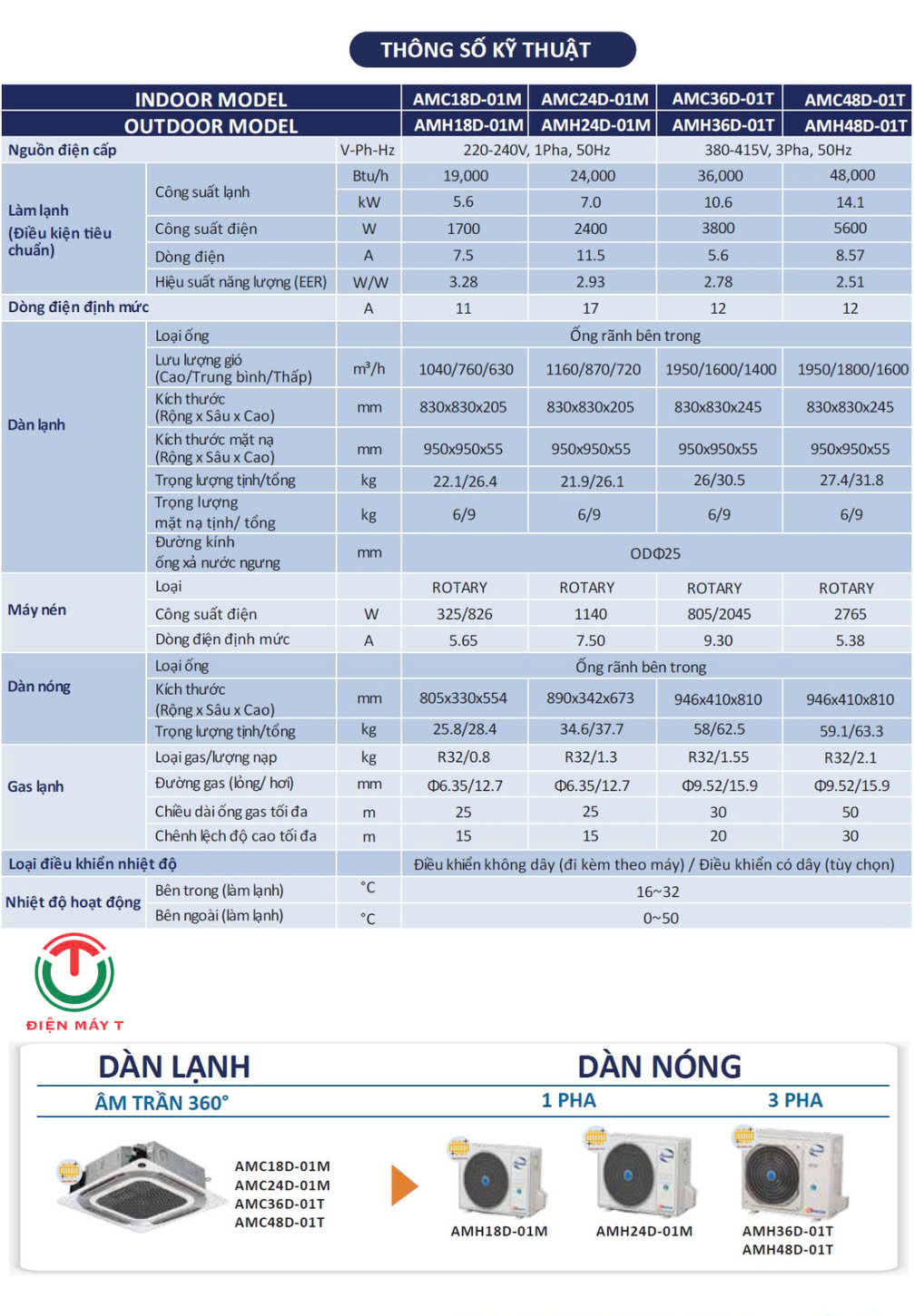 Máy lạnh âm trần 360° Airwell Inverter AMC36D-01T / AMH36D-01T ( 3 pha )