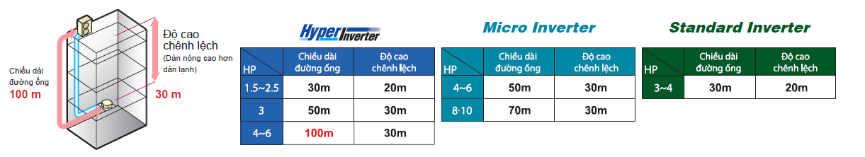 Độ dài ống đồng - 100m (hyper inverter 4-6hp)