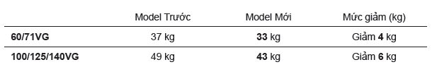 Từ việc giảm số lượng motor quạt từ 2 xuống chỉ còn có 1, nên trọng lượng cũng được giảm đáng kể