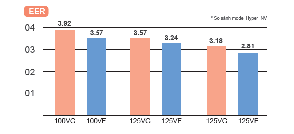 Hiệu suất năng lượng được cải thiện khi sử dụng hệ thống motor quạt và dàn trao đổi nhiệt có hiệu suất cao