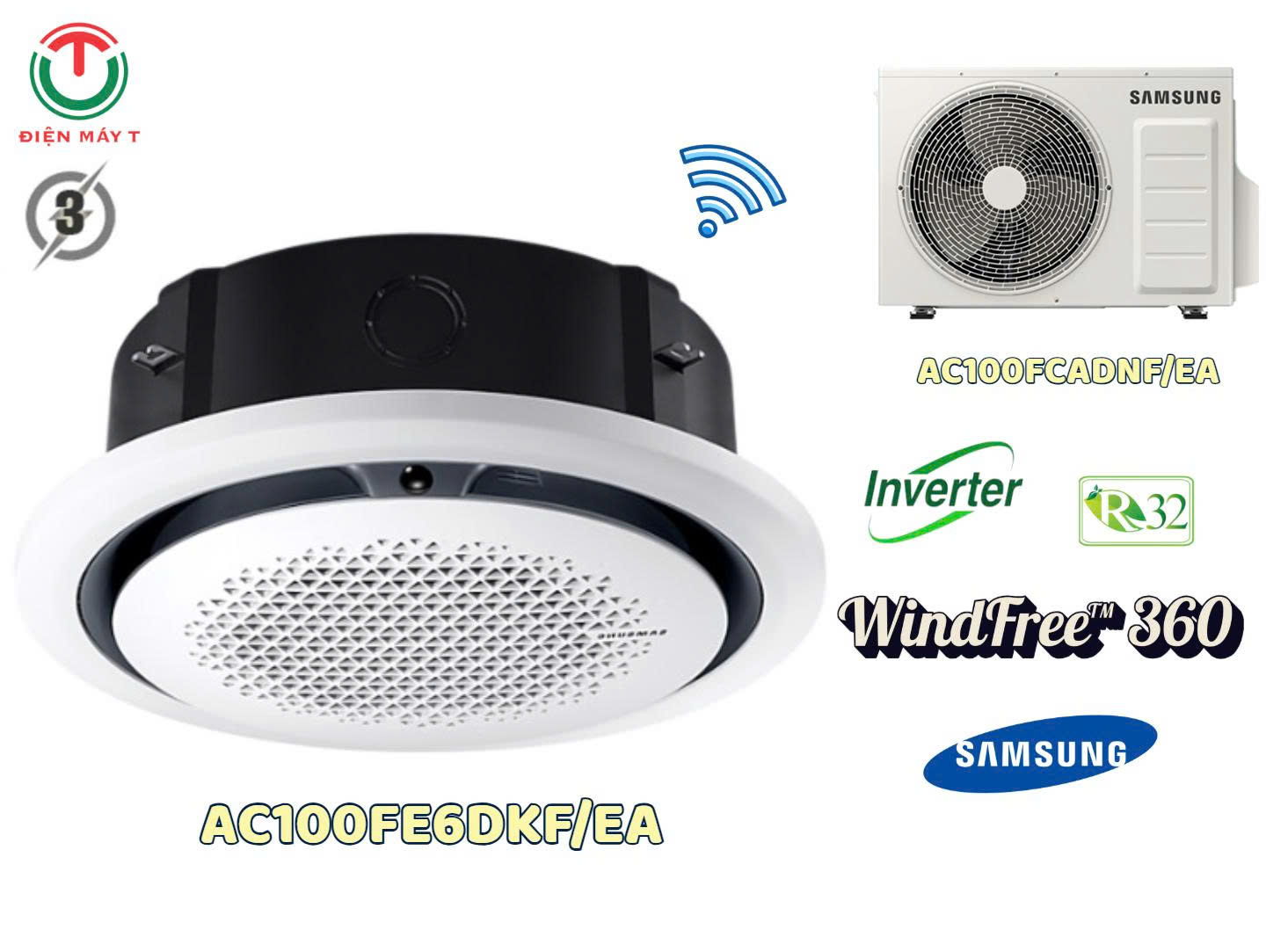 Máy lạnh Cassette Inverter Samsung 41.300btu WindFree™ 360 AC120FE6DKF/EA