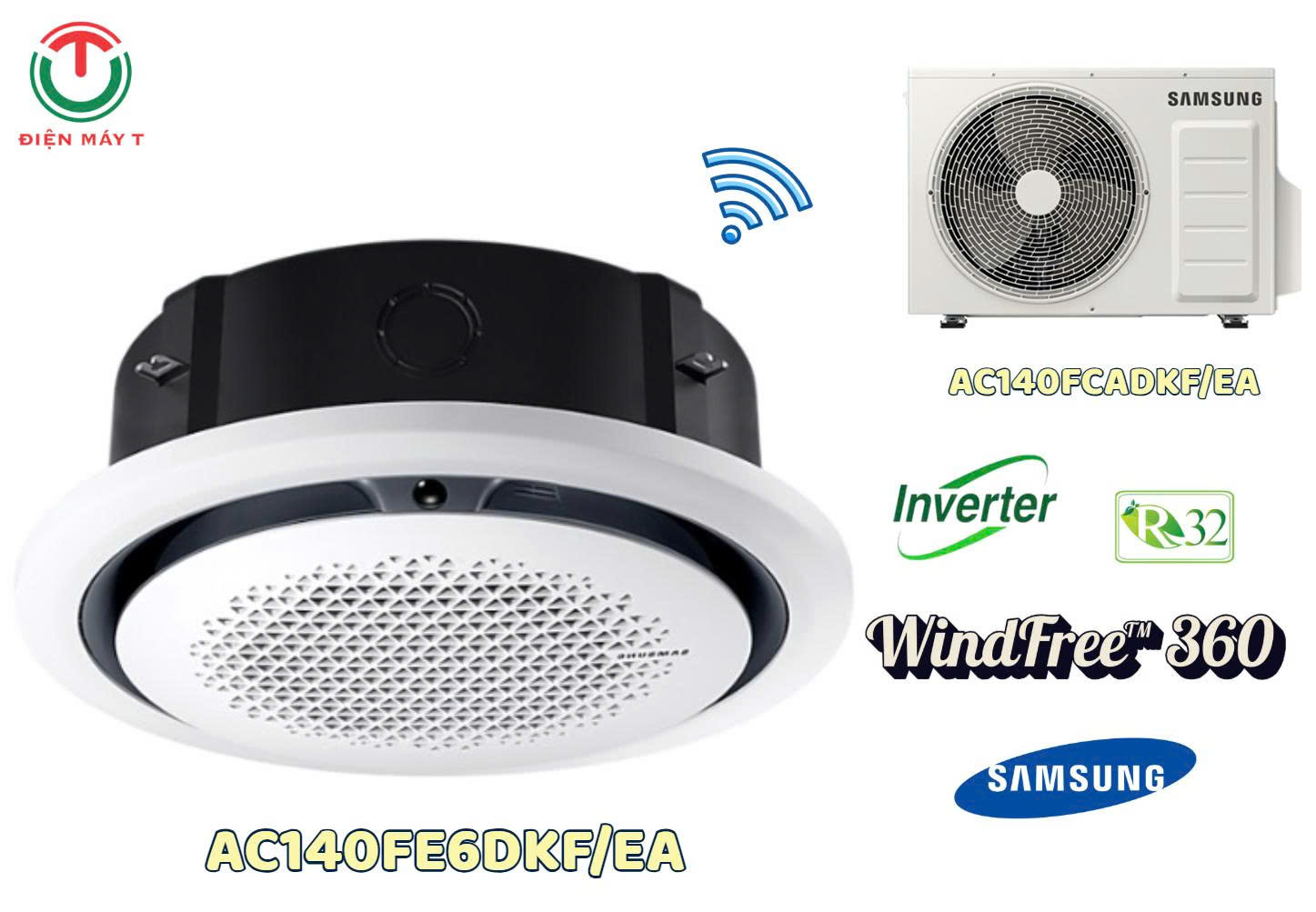 Máy lạnh Cassette Inverter Samsung 46.100btu WindFree™ 360 AC140FE6DKF/EA