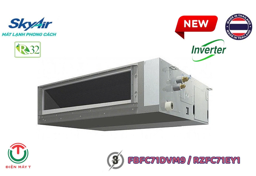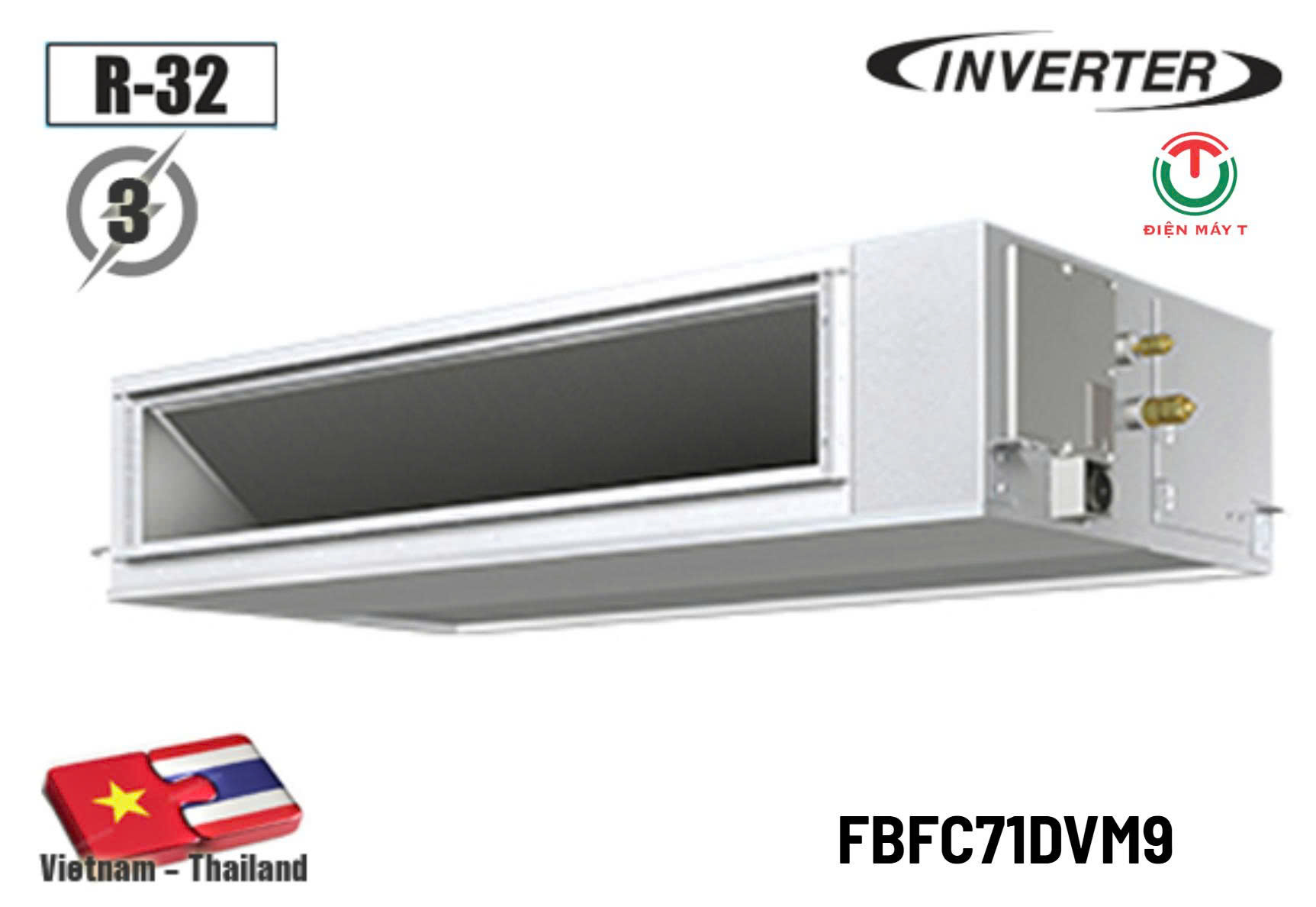 Điều hòa âm trần nối ống gió Daikin FBFC71DVM9/RZFC71EY1 chính hãng: Dàn lạnh FBFC71DVM9 sản xuất tại Việt Nam, Dàn nóng RZFC71EY1 nhập khẩu chính hãng tại Thái Lan.