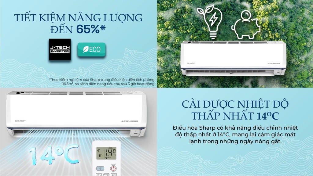 Máy lạnh Sharp Inverter 1.5 HP AH-X13CEWA được trang bị công nghệ J-Tech Inverter, giúp tiết kiệm điện lên đến 65% so với các dòng máy lạnh thông thường. Nhờ công nghệ này, máy vận hành êm ái, ổn định và bền bỉ hơn theo thời gian, đồng thời giảm đáng kể hóa đơn tiền điện hàng tháng.