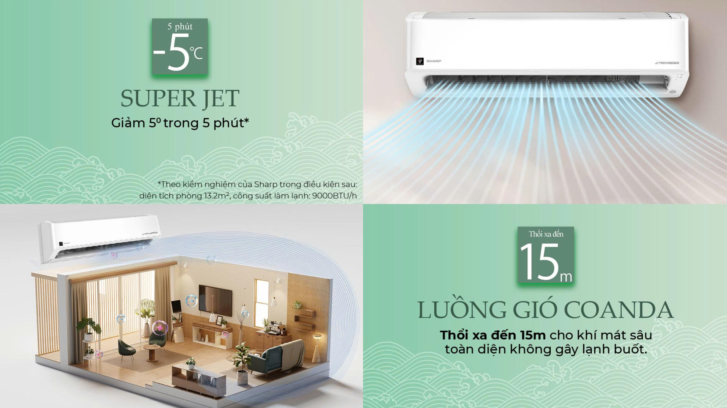 Máy Lạnh Sharp Inverter 2 HP AH-XP18CMW - Làm mát nhanh chóng, tiết kiệm thông minhKiểu dáng hiện đại, màu sắc trang nhãVới thiết kế tối giản cùng gam màu trắng tinh tế, Máy Lạnh Sharp Inverter 2 HP AH-XP18CMW dễ hòa hợp với mọi không gian nội thất, từ hiện đại đến cổ điển. Công suất 2 HP có thể đáp ứng nhu cầu làm mát hiệu quả cho các khu vực rộng từ 20 - 30m². Kiểu dáng hiện đại của Máy Lạnh Sharp Inverter 2 HP AH-XP18CMW Được trang bị ống dẫn gas bằng đồng và lá tản nhiệt nhôm phủ BlueFin, Máy Lạnh Sharp AH-XP18CMW không chỉ bền bỉ trước sự ăn mòn, gỉ sét mà còn duy trì hiệu suất làm lạnh ổn định trong các điều kiện khác nhau. Công nghệ lọc khí Plasmacluster IonMáy Lạnh Sharp Inverter 2 HP AH-XP18CMW tích hợp công nghệ Plasmacluster Ion, sử dụng các ion dương và ion âm để làm sạch không khí. Khi được phát tán vào môi trường, các ion này sẽ bám vào bề mặt vi khuẩn, virus, nấm mốc và các tác nhân gây dị ứng, phá vỡ cấu trúc protein của chúng, từ đó vô hiệu hóa và tiêu diệt chúng. Công nghệ Plasmacluster Ion trên Máy Lạnh Sharp AH-XP18CMW Sau khi hoàn tất quá trình làm sạch, các ion sẽ kết hợp lại thành hơi nước an toàn cho sức khỏe. Nhờ đó, công nghệ Plasmacluster mang lại không khí trong lành, sạch khuẩn và dễ chịu hơn cho người dùng. Tự làm sạch dàn lạnh Self CleanTính năng Tự làm sạch dàn lạnh Self Clean trên Máy Lạnh Sharp Inverter 2 HP AH-XP18CMW ứng dụng công nghệ Plasmacluster Ion, mang đến không gian trong lành và tăng độ bền cho thiết bị. Tính năng này không chỉ giảm độ ẩm mà còn duy trì hiệu suất làm lạnh tối ưu, đồng thời kéo dài đáng kể tuổi thọ của thiết bị. Tính năng tự làm sạch dàn lạnh Self Clean Công nghệ Super Jet làm lạnh nhanhMáy Lạnh Sharp Inverter 2 HP AH-XP18CMW tích hợp công nghệ Super Jet mang đến khả năng làm mát vượt trội chỉ trong thời gian ngắn. Chế độ này sẽ tăng công suất hoạt động lên mức tối đa, giúp giảm nhiệt độ phòng nhanh chóng đến 5°C chỉ trong vòng 5 phút. Máy Lạnh Sharp Inverter 2 HP AH-XP18CMW làm lạnh nhanh chóng Luồng gió Coanda mát dịu tự nhiênCông nghệ luồng gió Coanda trên Máy Lạnh Sharp Inverter 2 HP AH-XP18CMW mang đến trải nghiệm thoải mái tối đa cho người dùng. Hoạt động dựa trên nguyên lý Coanda, luồng gió được điều hướng bám sát trần nhà, sau đó lan tỏa nhẹ nhàng và đồng đều khắp không gian. Nhờ đó, hơi lạnh không thổi trực tiếp vào cơ thể, giúp tránh cảm giác lạnh buốt hay khô da - lý tưởng khi nghỉ ngơi hoặc trong lúc ngủ. Luồng gió Coanda không thổi hơi lạnh trực tiếp vào cơ thể Công nghệ J-Tech Inverter, chế độ Eco tiết kiệm điện năngMáy Lạnh Sharp Inverter 2 HP AH-XP18CMW là lựa chọn lý tưởng cho những ai đang tìm kiếm giải pháp làm mát hiệu quả mà vẫn tiết kiệm điện năng. Nhờ được trang bị công nghệ J-Tech Inverter, thiết bị có khả năng điều chỉnh công suất hoạt động linh hoạt, giúp duy trì nhiệt độ ổn định mà không tiêu tốn quá nhiều điện. Máy Lạnh Sharp AH-XP18CMW tích hợp công nghệ J-Tech Inverter Bên cạnh đó, chế độ Eco cho phép máy hoạt động ở mức công suất tối ưu khi không gian đã được làm mát ổn định. Sự kết hợp giữa hai công nghệ này giúp giảm đáng kể chi phí, đồng thời mang đến sự thoải mái cho người dùng. 7 tính năng bảo vệ an toànMáy Lạnh Sharp Inverter 2 HP AH-XP18CMW được trang bị 7 tính năng bảo vệ an toàn vượt trội, đáp ứng tiêu chuẩn chất lượng nghiêm ngặt của Nhật Bản. Những công nghệ này giúp thiết bị vận hành ổn định, bền bỉ trong nhiều điều kiện môi trường khắc nghiệt. Cụ thể, máy có khả năng chống cháy, chống ăn mòn, chống sấm sét, chịu nhiệt tốt, chống sốc, hạn chế hư hại và duy trì hoạt động ổn định. Máy Lạnh Sharp AH-XP18CMW tích hợp 7 tính năng bảo vệ an toàn Máy Lạnh Sharp Inverter 2 HP AH-XP18CMW mang đến không gian sống thoải mái hiệu suất làm mát nhanh chóng cùng khả năng tiết kiệm điện vượt trội. Sản phẩm có công suất 2 HP, phù hợp cho nhu cầu làm mát ở các khu vực rộng từ 20 - 30m². |