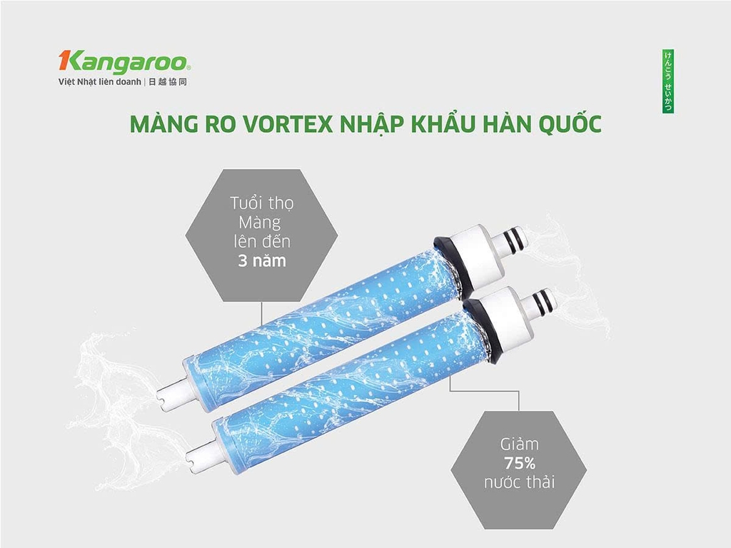 KGHP10V4 sử dụng màng lọc RO Vortex nhập khẩu Hàn Quốc, ứng dụng công nghệ dòng chảy xoáy để hạn chế đóng cặn. Nhờ đó, tuổi thọ màng lọc kéo dài gấp ba lần so với màng RO thông thường.