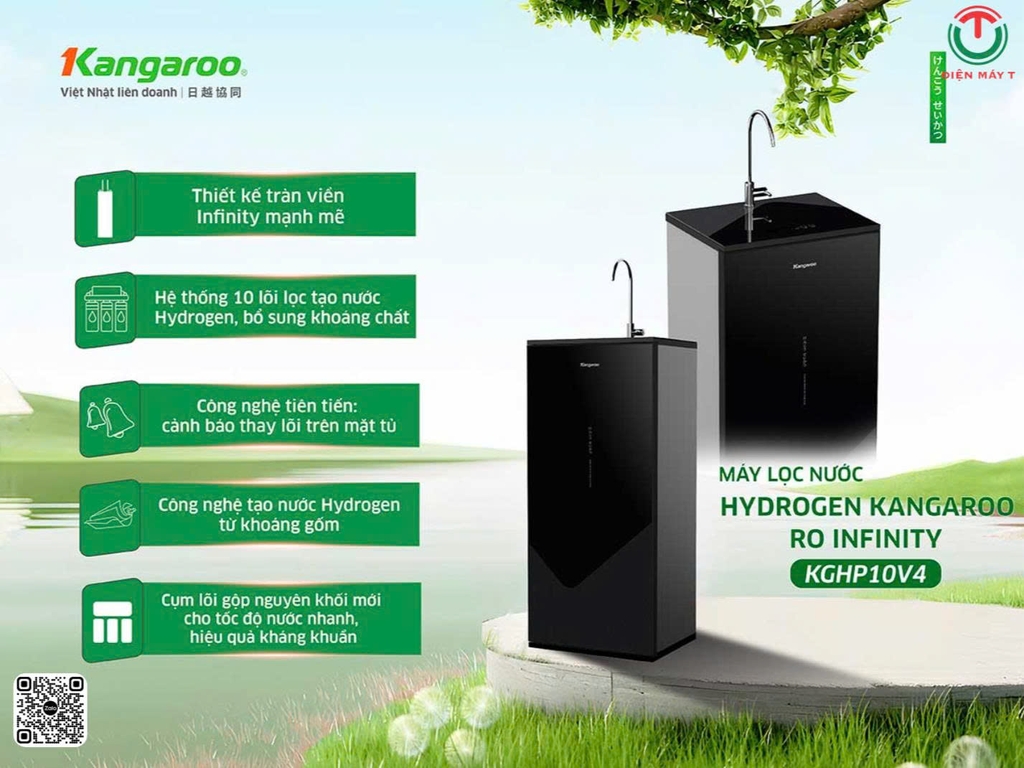 Kangaroo KGHP10V4 là model cao cấp dòng Infinity với mặt kính tràn viền và cụm lõi lọc nguyên khối hiện đại. Máy tích hợp công nghệ tạo Hydrogen bằng khoáng gốm, đi kèm hệ lõi 10 tầng mạnh mẽ và tính năng cảnh báo thay lõi thông minh. Tốc độ lọc nhanh, nước sạch tinh khiết và tốt cho sức khỏe chính là ưu điểm nổi bật của sản phẩm này.