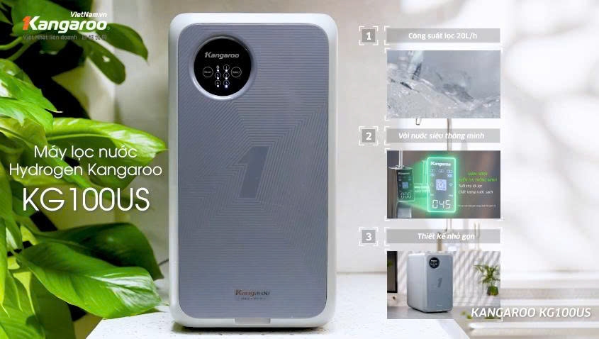 Kangaroo Hydrogen KG100US là thế hệ máy lọc nước mới nhất với những tính năng thông minh vượt trội. Thiết kế nhỏ gọn, công suất lọc lớn 20L/h, cảnh báo thay lõi, hiển thị chất lượng nước sạch TDS ngay tại vòi,… KG100US sẽ là sản phẩm hoàn hảo dành cho gia đình bạn.