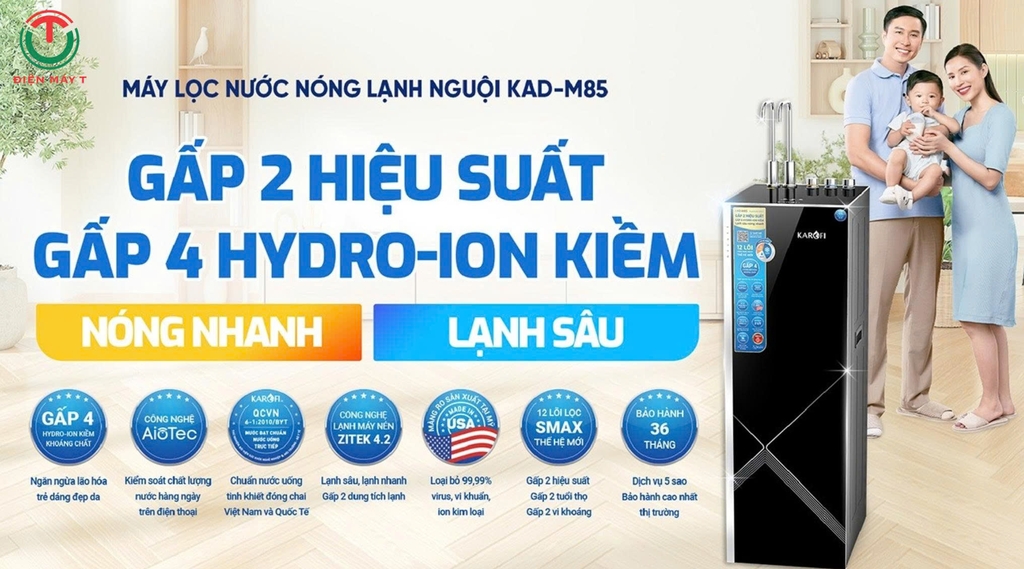 Vượt lên trên tiêu chuẩn của một chiếc máy lọc nước thông thường, Karofi KAD-M85 mang đến trải nghiệm đột phá với những cải tiến đỉnh cao. Nước sau lọc tại vòi đạt chuẩn tinh khiết đóng chai, gấp 4 hàm lượng Hydro-ion kiềm cùng 3 chế độ nước tiện lợi, giúp bạn và cả gia đình an tâm sống khỏe.