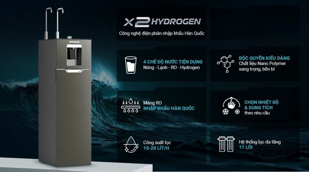 Chiêm ngưỡng bước đột phá trong máy lọc nước RO UltraX SUNHOUSE 11 lõi SHA76688SH - một tuyệt tác hoà quyện hoàn hảo giữa công nghệ tiên tiến và thẩm mỹ đỉnh cao. Tâm điểm chính là công nghệ điện phân Hydrogen mang đến nguồn nước khỏe, giàu hydrogen, hứa hẹn nâng cao sức khỏe người dùng trong từng giọt nước. Sở hữu kiểu dáng độc quyền, thiết kế slim sang trọng, sản phẩm còn đặc biệt bởi tính năng chọn nhiệt độ và thể tích nước nóng linh hoạt đáp ứng đa dạng nhu cầu sử dụng.