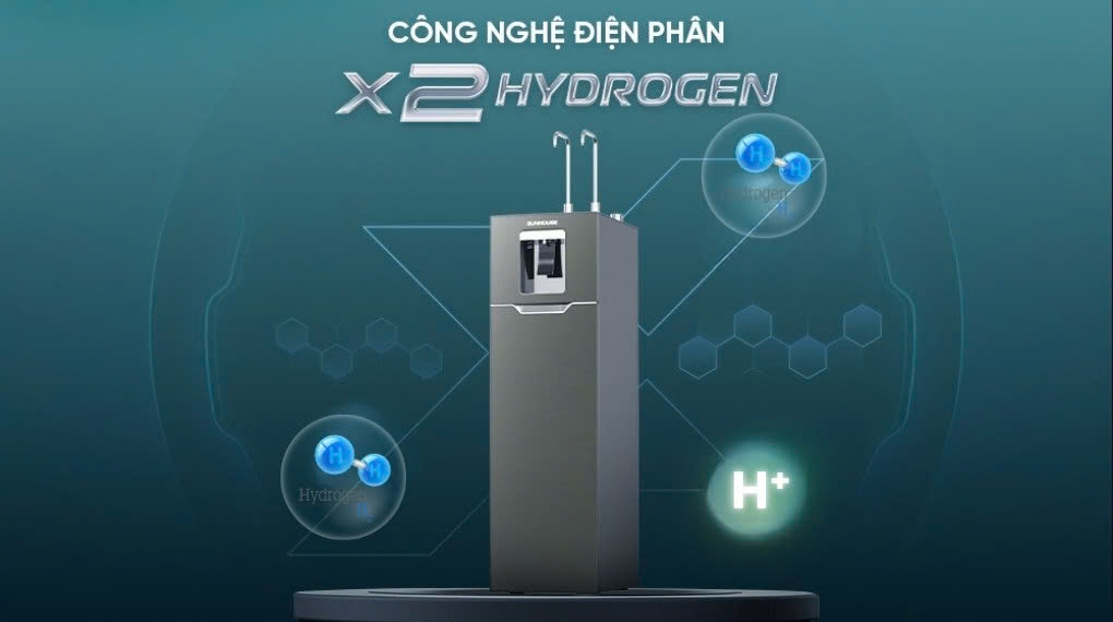 Dẫn đầu công nghệ lọc nước mới nhất, Sunhouse đã nâng tầm chuẩn mực bằng việc sử dụng bộ điện phân với điện cực Titanium phủ Platinum cao cấp nhập khẩu từ Hàn Quốc. Tăng gấp đôi hàm lượng Hydrogen trong nước, Sunhouse mở ra một kho tàng lợi ích sức khỏe bởi khả năng chống oxy hóa mạnh, trung hòa các gốc tự do trong cơ thể, giúp ngăn ngừa sự hư hại tế bào và các tình trạng viêm mãn tính. Hàm lượng Hydrogen trong nước cao tới 1200 – 1500 Ppb, hỗ trợ loại bỏ hiệu quả các gốc tự do nguy hiểm, ngăn ngừa lão hóa và tăng cường đề kháng cơ thể.