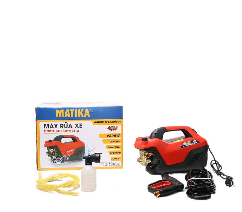 Matika MTK-CWM2812 được nhà sản xuất tối ưu về mặt thiết kế vô cùng đẹp mắt, gọn gàng giúp máy linh hoạt, tiện dụng hơn khi vận hành. Máy kích thước vừa phải, tay xách chắc chắn người sử dụng có thể mang đi tới nhiều nơi một cách đơn giản và nhanh chóng. Chất liệu vỏ ngoài bằng nhựa ABC cứng cáp, trơn nhẵn dễ lau chùi vệ sinh, chịu được các tác động vật lý cơ bản không làm ảnh hưởng tới các bộ phận bên trong. Với công suất 2800W và lực phun áp lực mạnh mẽ những vẫn tiết kiệm điện, nước. Lực nước phun ra mạnh mẽ, dứt khoát giúp đẩy bay bụi bẩn cứng đầu, kể cả trong những ngóc ngách, khe nhỏ. Máy rửa xe còn trang bị dây phun cao áp 15m giúp bạn có thể dễ dàng làm sạch các vết bẩn từ khoảng cách xa.