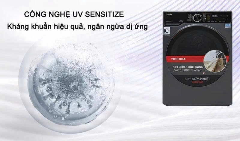 Chế độ kháng khuẩn giúp loại bỏ 99,9%* vi khuẩn trên quần áo nhờ sấy ở nhiệt độ cao và tia UV. Ngăn ngừa sự tích tụ vi khuẩn trên quần áo như áo khoác, chăn màn và đồ chơi mềm, giúp quần áo trở nên thân thiện hơn với làn da.