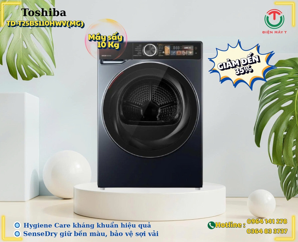 Máy sấy Toshiba TD-T25BS110HWV(MG) với thiết kế cửa 2 lớp kính cường lực kết hợp cùng bảng điều khiển cảm ứng màu sắc nét tạo nên một sản phẩm liền mạch và tinh xảo trong từng đường nét.