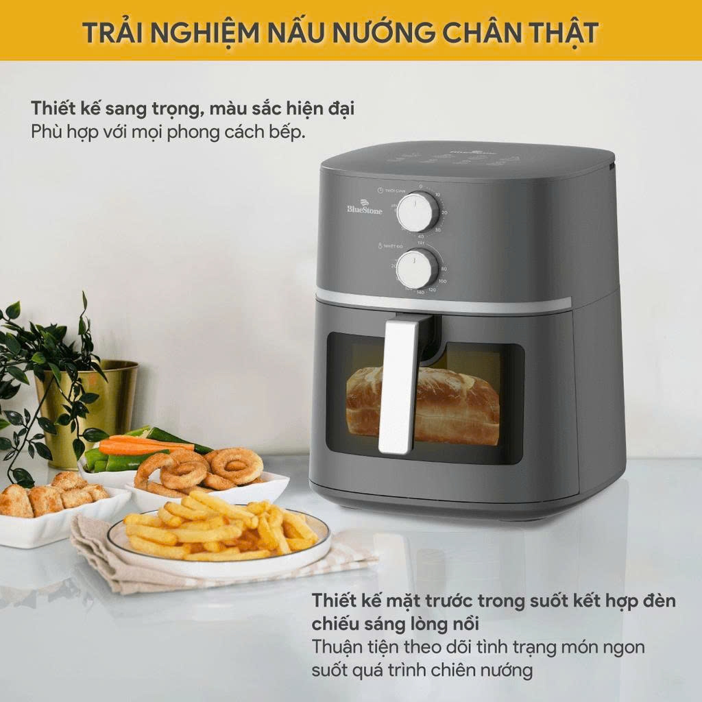 Nồi chiên không dầu BlueStone AFB-5856 công suất 1700W chiên nướng nhanh chóng cùng công nghệ X Cyclone giúp thực phẩm chín mềm, giòn ngon. Thuận tiện nấu nướng với hẹn giờ lên tới 60 phút, nhiệt độ dễ dàng điều chỉnh từ 80 – 200 độ C phù hợp đa dạng nhu cầu.