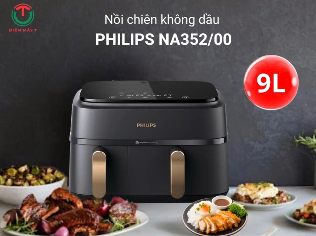 Nồi Chiên Không Dầu Philips NA352/00 với thiết kế 2 ngăn tiện lợi, bạn có thể nấu nhiều loại thực phẩm khác nhau cùng một lúc. Ngăn lớn phù hợp để nấu các món chính, khoai tây chiên, trong khi ngăn nhỏ hơn có thể được sử dụng để nấu các món ăn kèm, rau và đồ ăn nhẹ.
