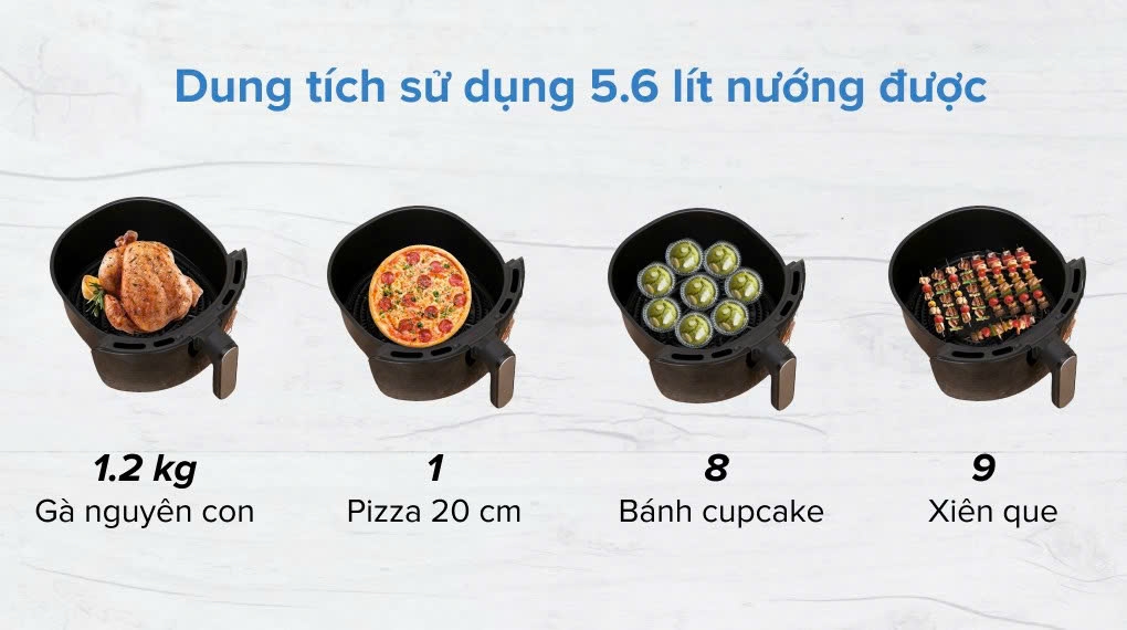 Thiết kế bên ngoài bo tròn nhìn khá nhỏ nhưng bên trong lại nấu được tới 1.6 kg thực phẩm trong một lần, cho gia đình từ 6-8 người ăn thoải mái kèm với độ là dải nhiệt độ chính xác từ 80 ° C đến 200 ° C để cho ra thành phẩm hoàn hảo.