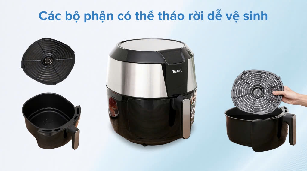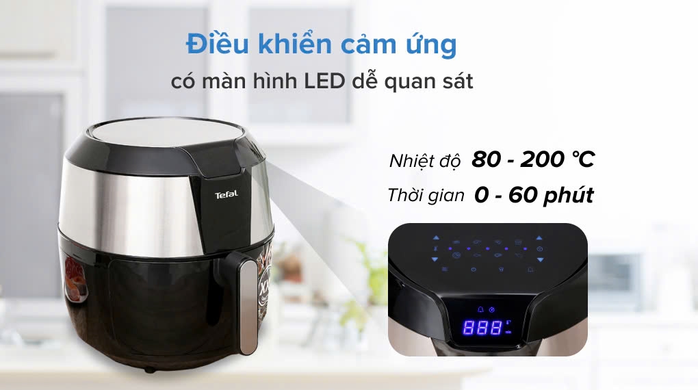 Nồi chiên không dầu Tefal có bảng điều khiển bằng điện tử được mặc định sẵn các menu nấu, mỗi menu nấu đã được cài đặt sẵn nhiệt độ và thời gian phù hợp với món ăn đã chọn. Không những vậy nồi còn có chức năng hẹn giờ 60 phút với hệ thống tự động tắt và chuông báo khi đã nấu xong. Các bộ phận được thiết kế an toàn có thể tháo rời và cho vào máy rửa chén để làm sạch.