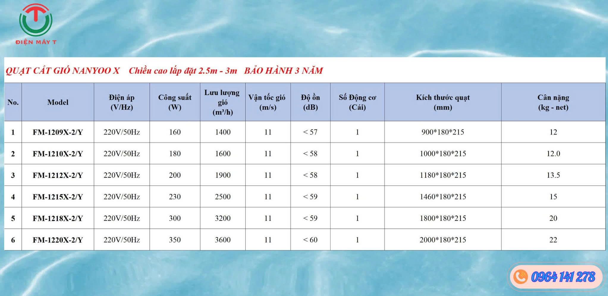 Mô tả chung sản phẩm: Quạt cắt gió Nanyoo FM-1220X-2/Y